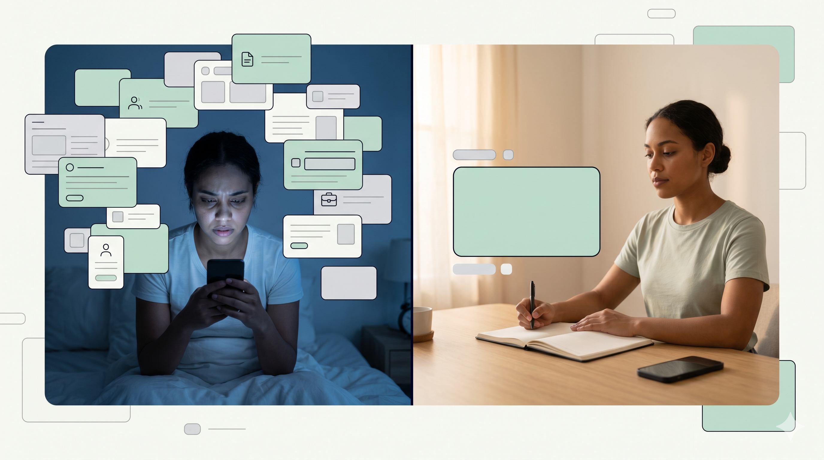 This is a version of what we call the Split-Screen Trap — half of you is doing your job, half of you is doom-scrolling disguised as career planning. Neither half gets your full energy.
