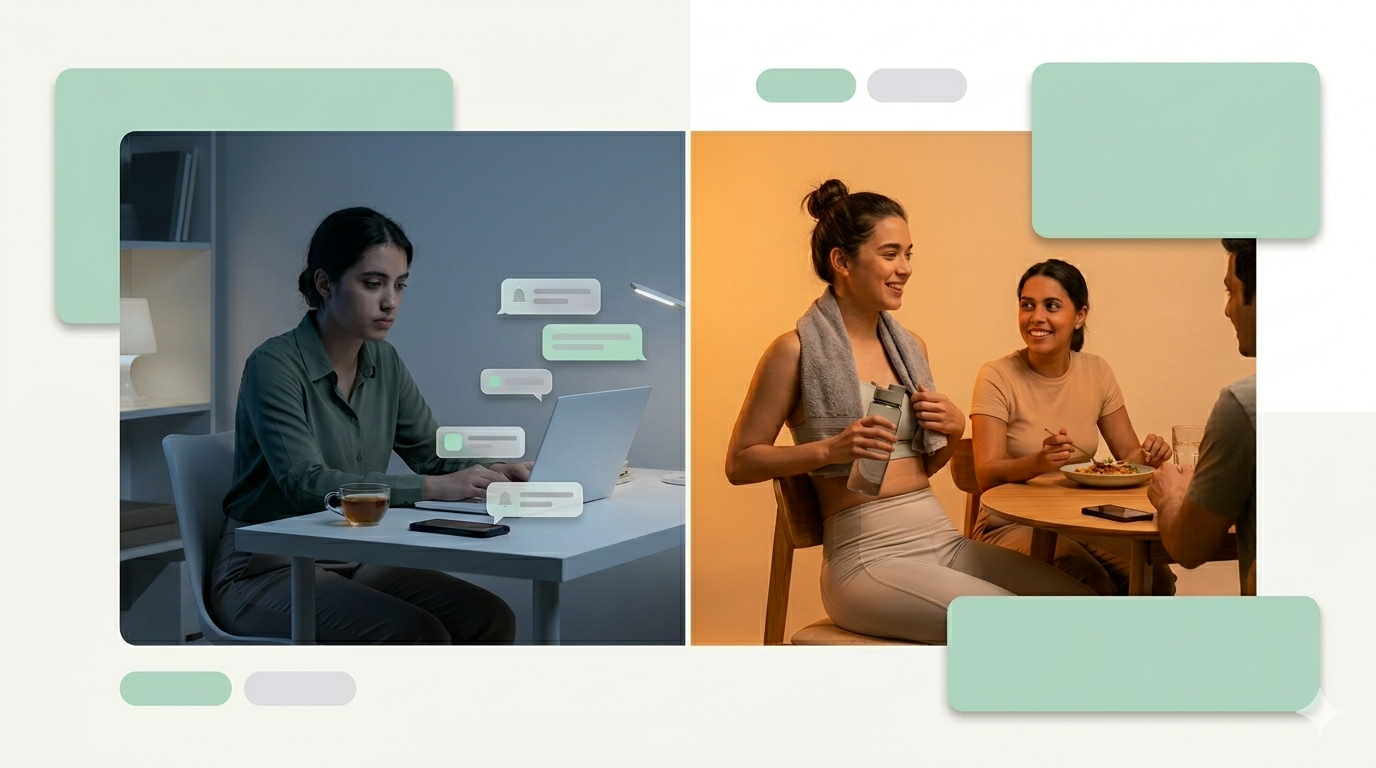 Skip the gym, keep working, order takeout — and go to bed feeling like a barely functional adult. Or go to the gym, spend the entire workout checking your phone between sets, and feel terrified you look "less committed" to your manager.